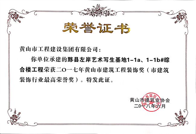 2017年度黄山市建筑工程装饰奖