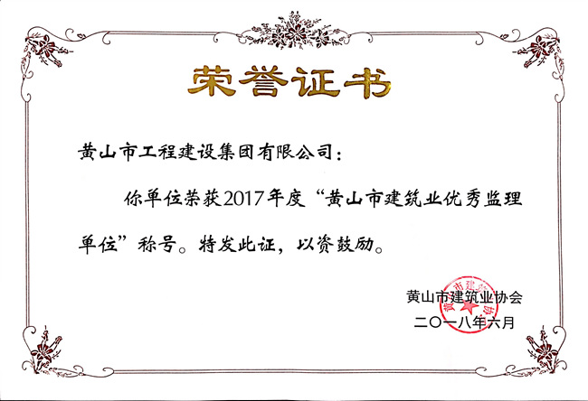 2017年度黄山市建筑业优秀监理单位
