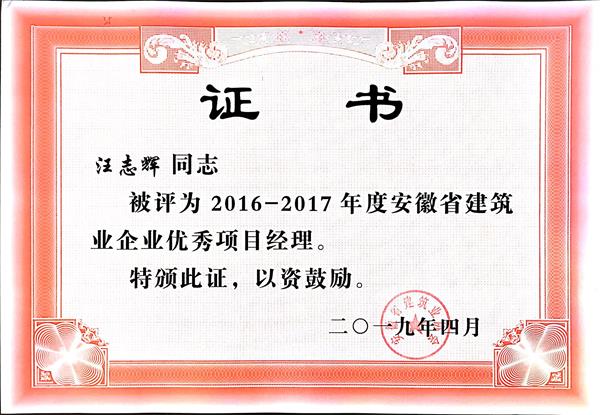 2016-2017年度安徽省建筑业企业优秀项目经理
